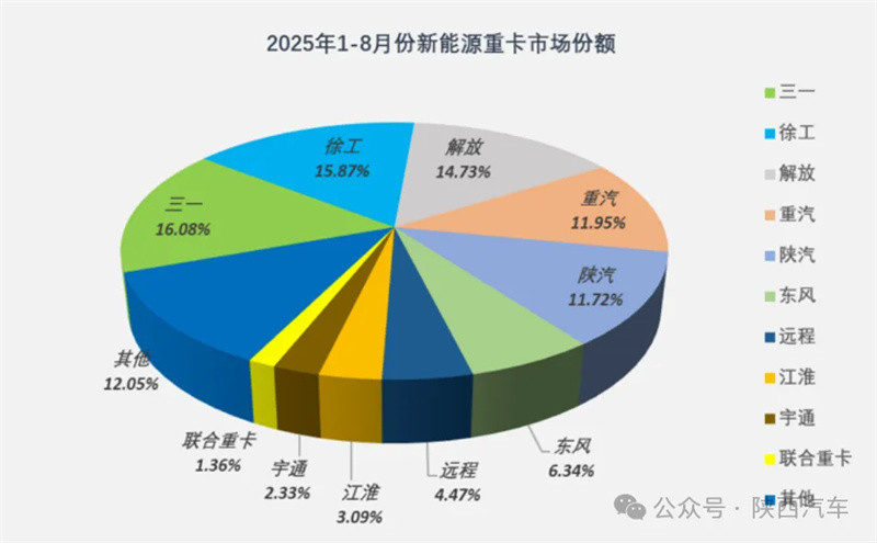 根据北斗营运证入网销量显示,2025年8月份,全国共新增新能源重卡1.58万辆,同比去年8月则增长了近万辆,同比涨幅高达169%。陕汽排名升至第4,销量达到1830辆,增速325%领跑行业。