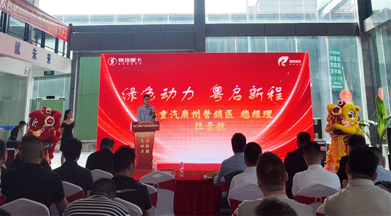 融和绿动董事长李国栋致欢迎辞。他表示,广东作为经济和物流重要区域,是新能源重卡落地的关键市场。未来将以专营店为平台,深化合作,打造集销售、服务、金融于一体的绿色物流解决方案,助力运输行业低碳转型。